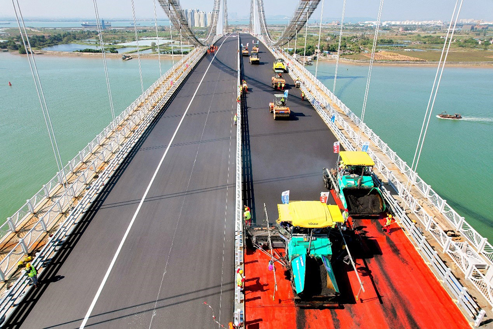 智翔公司攻克鋪裝技術“卡脖子”問題 東江南支流港灣大橋橋面鋪裝工程驚喜開年