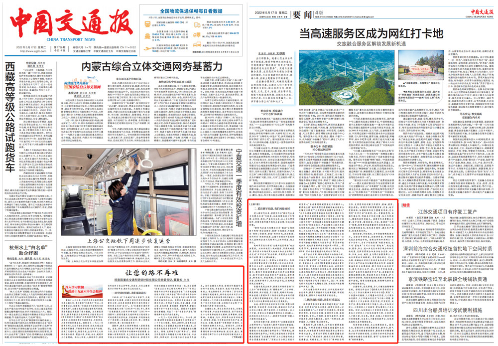 《中國交通報》頭版刊發《讓您的路不再難》