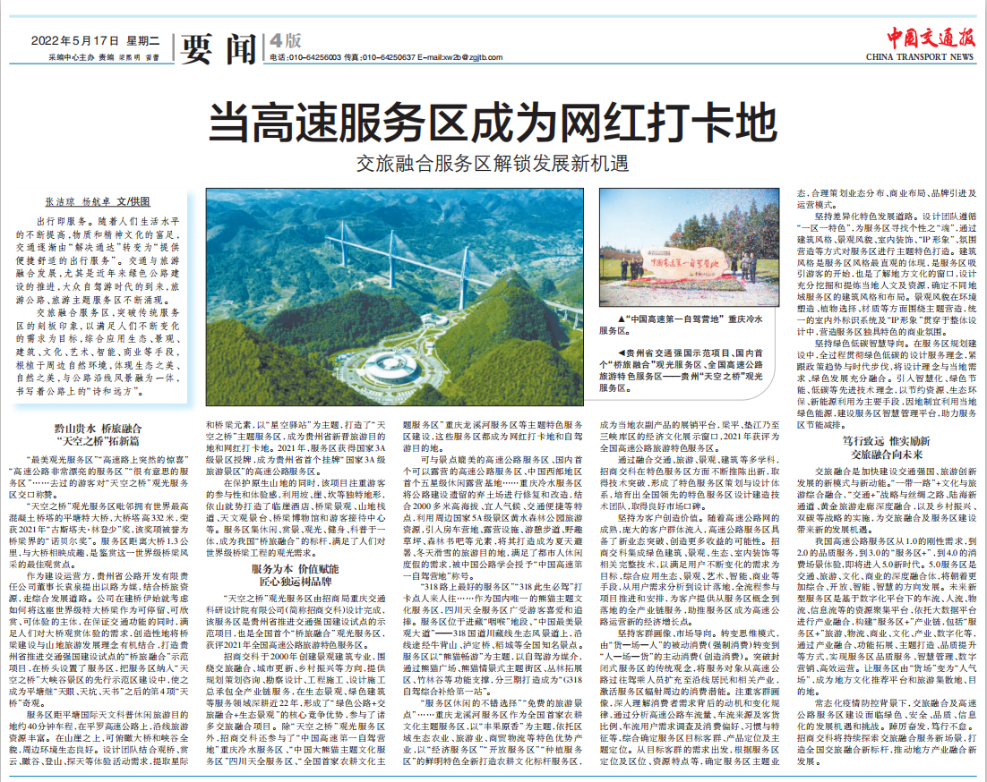 當天的《中國交通報》還以《當高速服務區成為網紅打卡地——交旅融合服務區解鎖發展新機遇》為題刊發專題報道,詳細介紹招商交科探索交旅融合發展之路。