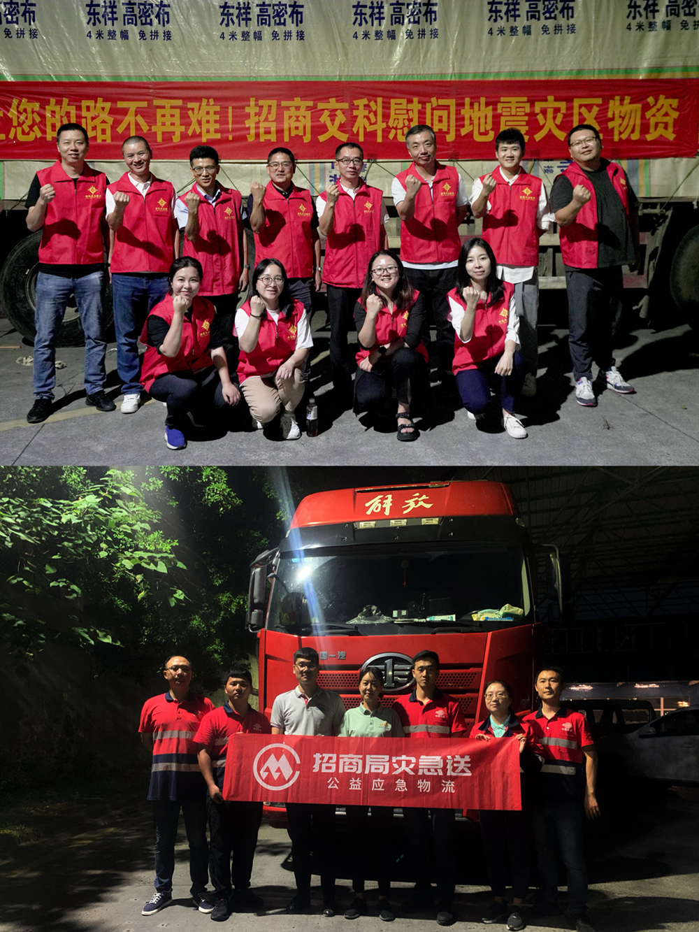 10日凌晨1點,招商交科為災區采購的十余噸物資由志愿者們有序裝車完畢,在招商局慈善基金會關注支持下,聯合外運物流啟動招商局“災急送”公益應急物流支持,連夜出發。