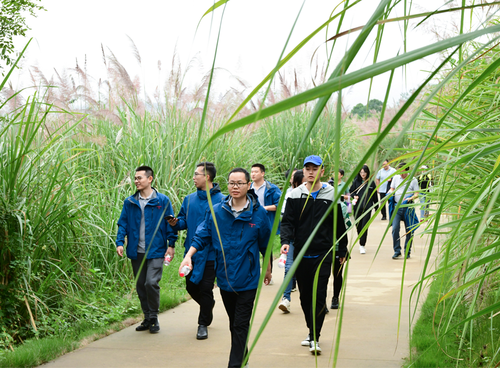 活動期間,參加活動的員工們前往重慶市廣陽島生態區,揮舞著招商局創立150周年的大旗,精神抖擻、身姿矯健地按照既定路線環島健步而行,徒步穿越約10公里的景區道路、田間小路,順利抵達終點勝利草場。全體參加人員隊列整齊,并大聲喊出“百年蝶變 逐夢向前”、“招商交科,讓您的路不再難”,為招商局創立150周年獻上最誠摯的祝福。