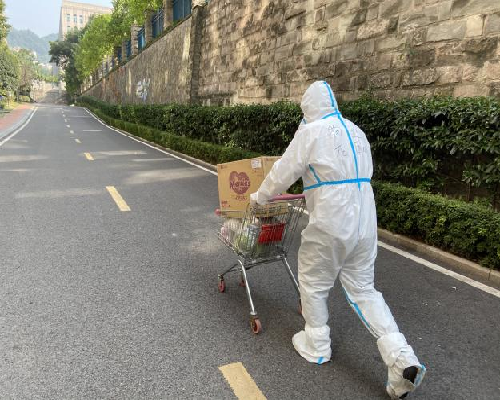 11月20日,交科園區內出現確診病例,整個園區按照高風險區域進行管控。物業服務團隊積極配合社區不定時開展核酸檢測、上門“追陽”、全面消殺、嚴把關口等工作。同時,為保障臨時封控樓棟業主正常生活所需,交科院物業服務團隊打通社區物資派送的“最后100米”,化身物資“配送員”,為“足不出戶”的社區居民采購、配送生活物資。
