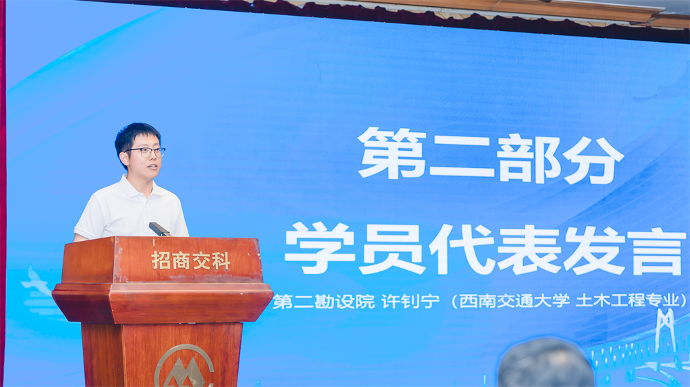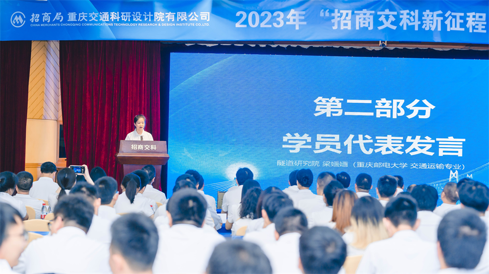 來自第二勘設院和隧道研究院的許釗寧、梁婳婳作為學員代表發言,紛紛表示要以奮斗者的姿態,迅速適應新環境、轉換新角色、勝任新崗位,讓自己在招商交科的廣闊舞臺上貢獻青春力量、綻放青春光彩,努力成長為招商交科高質量發展所需的創新型科研、設計人才。
