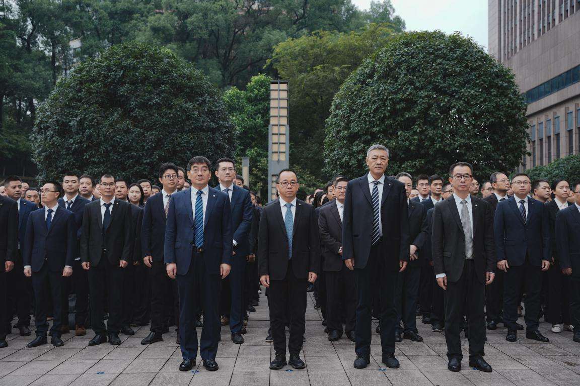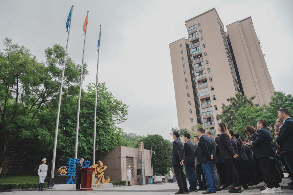 上午9時零5分,招商交科在交科院廣場舉行了升旗儀式。招商交科在家領(lǐng)導(dǎo)班子,各部門及單位員工代表,部分在渝招商系單位員工代表300余人參加儀式。