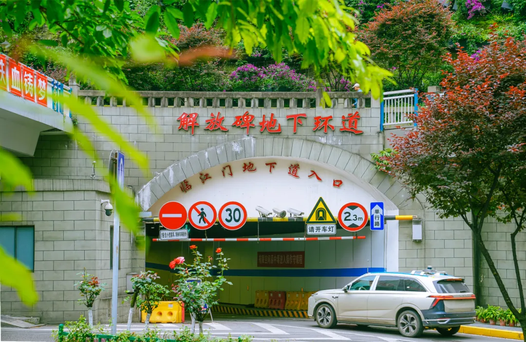 重慶解放碑商圈開發(fā)早,城市建筑密度非常高,地下空間環(huán)境極其復(fù)雜,給地下工程的修建帶來巨大困難。本項目位于解放碑中心城區(qū)地下,總長度約7.6公里,其中主通道全長約2.9公里,支洞及連接道長約4.7公里,由“一環(huán)、七射、多連通”組成,串聯(lián)解放碑核心區(qū)域28個地下車庫近2.3萬個車位。作為全國最大、重慶首例利用地下空間解決城市動態(tài)、靜態(tài)交通的項目,本項目為8D山城再添魔幻。