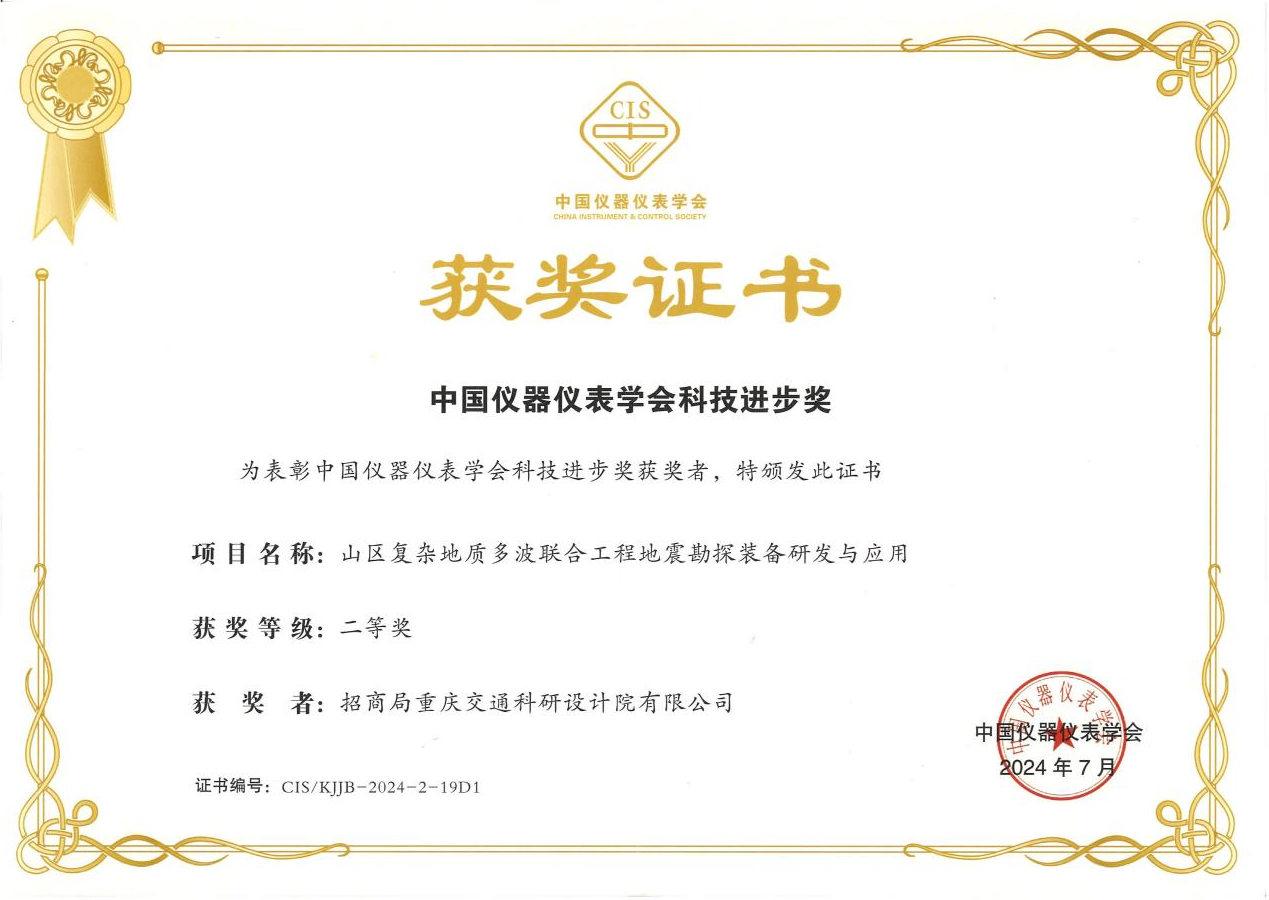 山區復雜地質地震勘探裝備榮獲中國儀器儀表學會科技獎