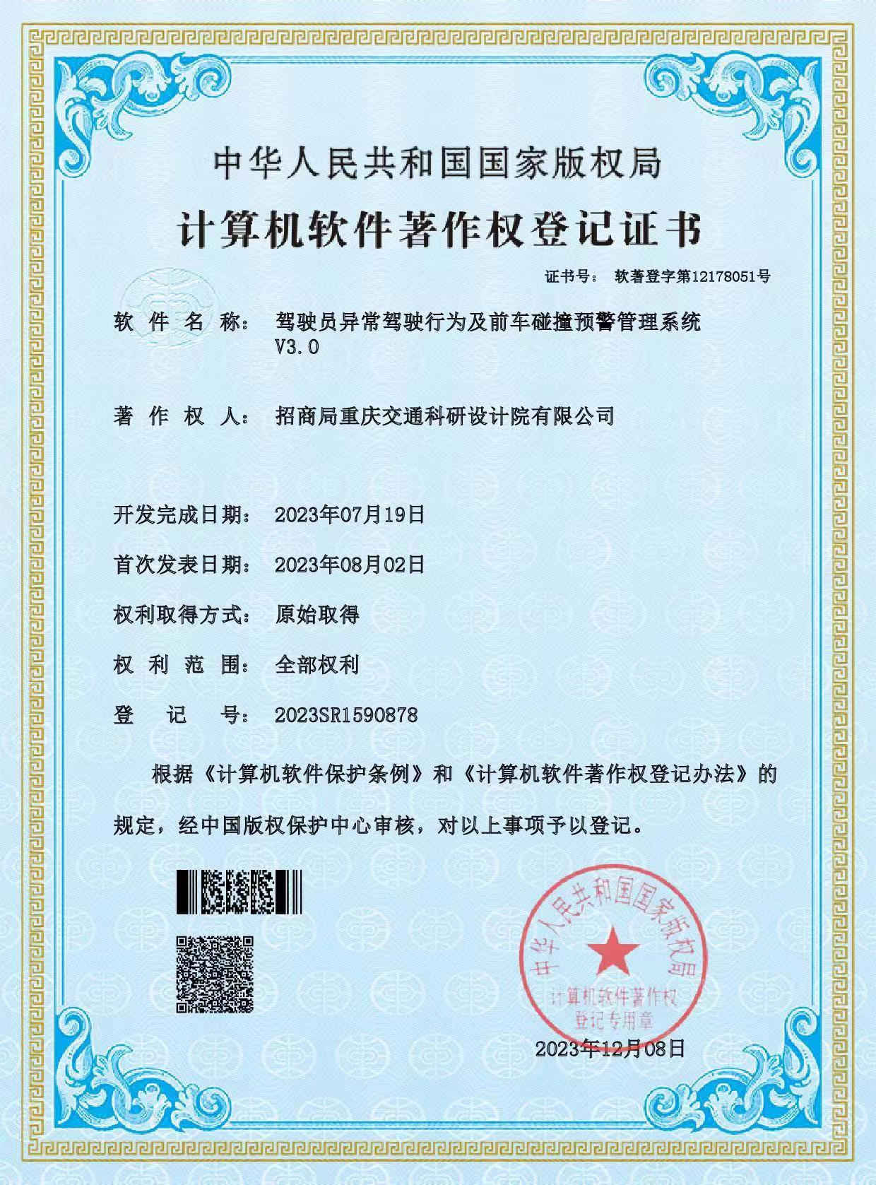黨的二十大報告提出“推動公共安全治理模式向事前預防轉型”,招商交科CMCT智能交通安全團隊以“減量控大”為主線,依托多個國家級、省部級重大研發項目,聚焦高速公路重點車輛安全監管方向,歷時6年時間,全面攻克重點車輛及其危險駕駛行為快速、精準識別與安全預警技術,獲授權發明專利2項,編制了《高速公路危險駕駛行為監測、預警及車輛控制技術指南》(西南交通大學出版社,2024年)。團隊自主研發的“高速公路重點車輛智能識別與風險預警系統”,具備對“兩客一危”車輛、大件運輸車輛等進行行駛路徑和違規駕駛行為識別等功能,對其通過特長隧道、特大橋梁、長下坡等路段進行全程跟蹤,并可關聯路側可變情報板、廣播等設施及時發出警告信息。