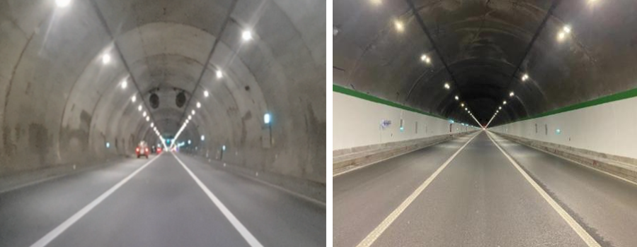 采用新型隧道涂裝材料和工藝,實現隧道整體環境的亮化,提高隧道線形誘導性、橫通道及緊急停車帶區域的警示性,提高隧道照明亮度及亮度均勻度,提升照明質量并有效抑制“側墻效應”,提高隧道行車安全性和通行能力。經大量工程實踐驗證,與智能照明控制系統結合運用,該項技術可實現照明節能15%左右,進一步提升隧道照明品質,增強公眾出行的安全感、體驗感和滿意度。“重慶市滬渝、渝黔高速公路隧道群智慧化提升項目”榮獲中國公路學會授予的“2023中國高速公路信息化年度杰出工程獎”。