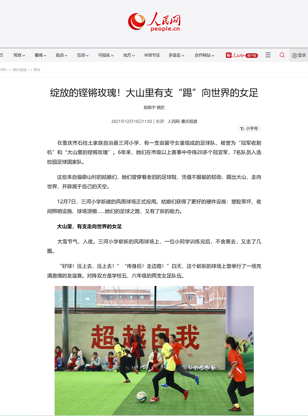 【轉載】人民網:綻放的鏗鏘玫瑰!大山里有支“踢”向世界的女足