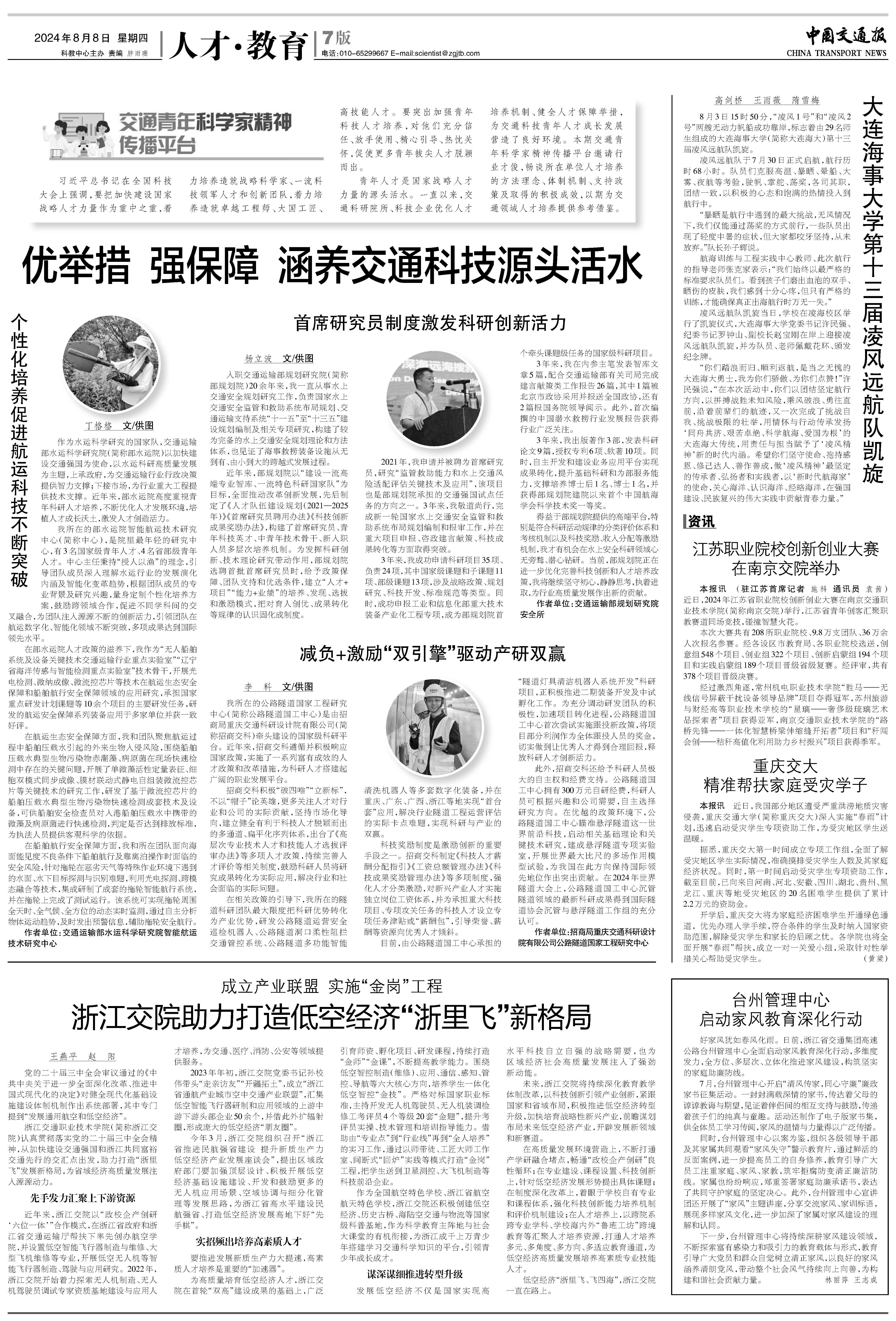 8月8日,《中國交通報》在第七版“人才·教育”專欄中,以《減負+激勵“雙引擎”驅動產研雙贏》為題,刊發了招商交科公路隧道國工中心李科研究員的署名文章,談到了招商交科在人才政策與激勵機制上的創新舉措。面對“破四唯”“立新標”的時代要求,招商交科聚焦人才的實際貢獻與行業價值,通過建立健全多通道、扁平化的序列體系,以及出臺一系列合理的人才政策,為科技人才搭建廣闊的職業發展舞臺,激發科研人員的創新活力與潛能。現將全文轉載如下: