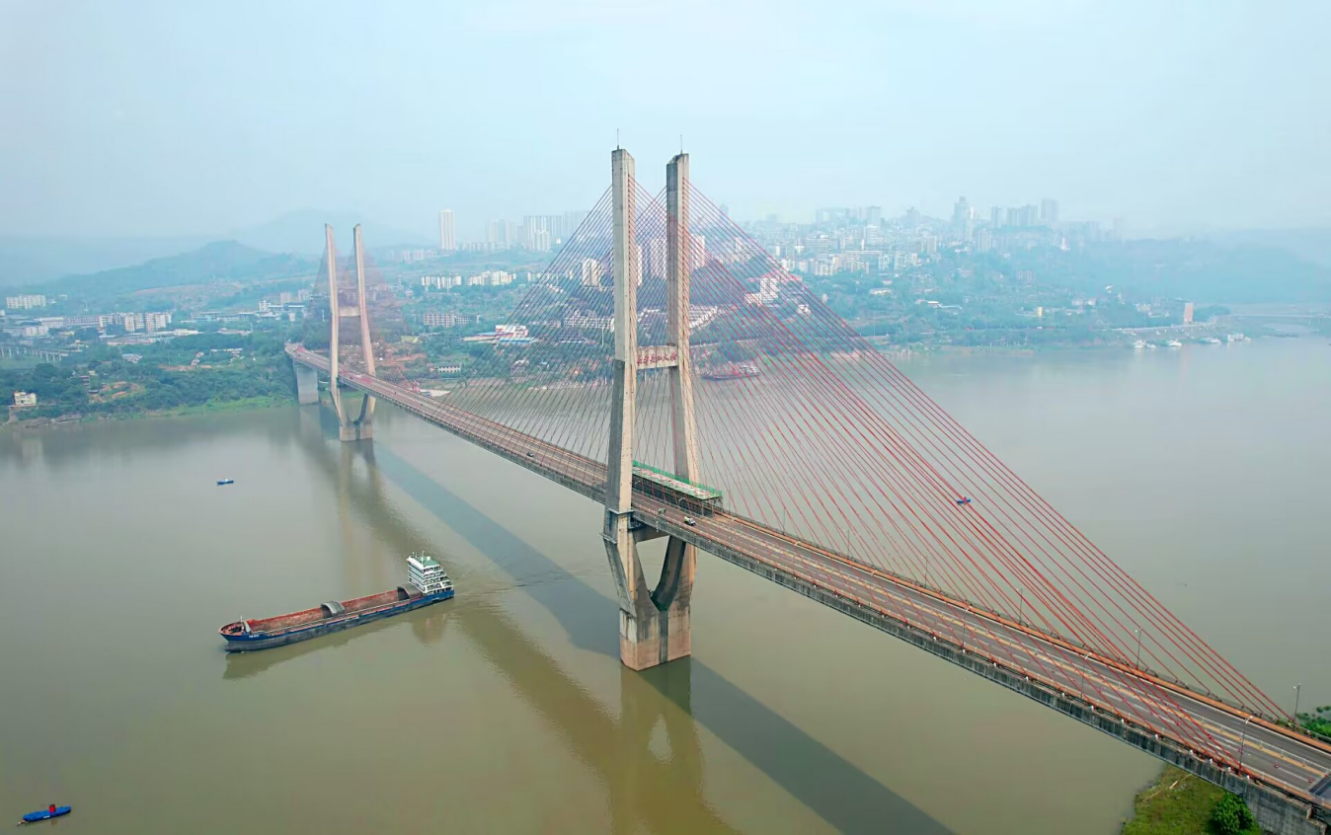 重慶長壽長江大橋是一座在長壽區(qū)跨越長江的特大型橋梁,為雙塔、平行雙索面,塔、墩固結(jié),主梁懸浮的預(yù)應(yīng)力 混凝土斜拉橋。主橋縱向布置為 207m+460m+207m,全長1146m。