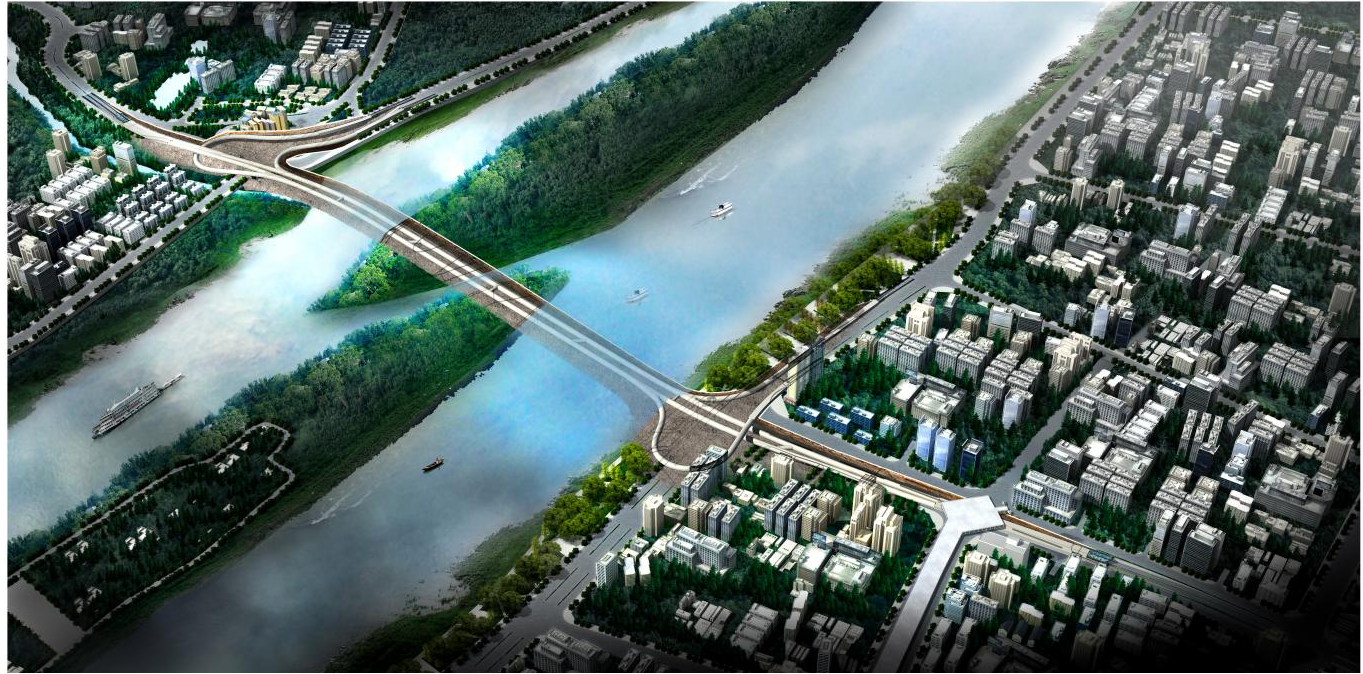 項目位于長沙市市區內,位于橘子洲大橋和銀盆嶺大橋之間,下穿瀟湘大道、傅家洲、橘子洲和湘江大道。項目為雙向四車道隧道,匝道為單向單車道隧道。主線設計車速50km/h,匝道設計車速40km/h,為迄今為止最復雜的水下立交隧道,我公司承擔初步設計。