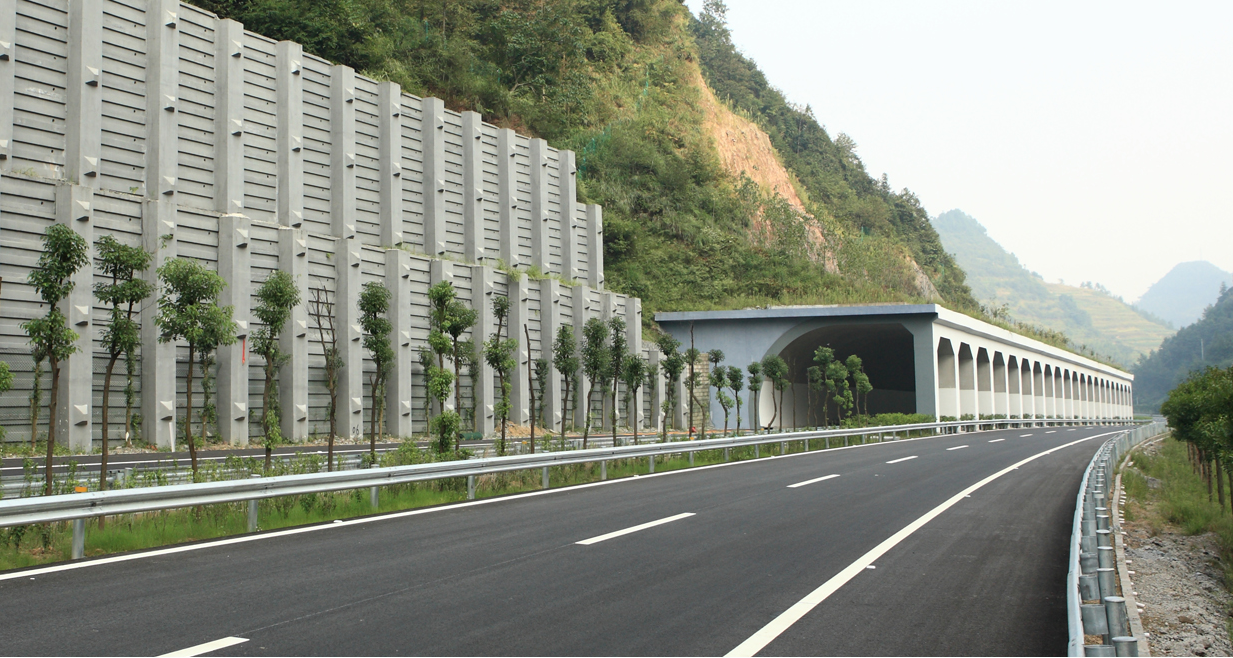 4.首次在高速公路大規模應用棚洞,針對性采用半拱斜柱、半拱直柱、全拱等新型棚洞結構,有效減少了山體開挖,同時解決了邊坡失穩問題,增加了運營安全性。