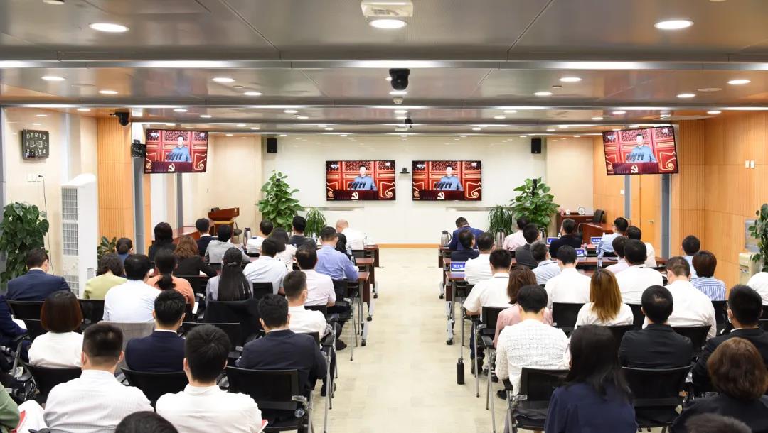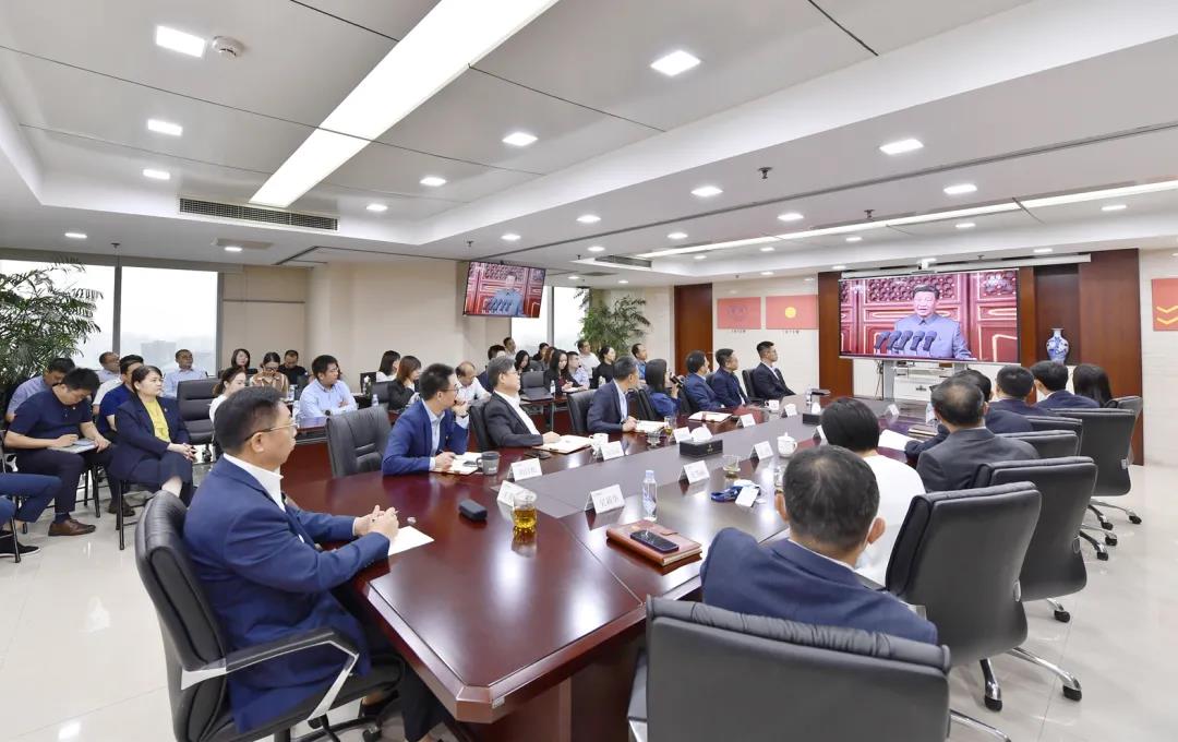 招商租賃組織全體干部員工收看大會直播,第一時間學習會議精神。公司在家班子成員、各黨支部書記及支部委員、員工代表在會議室統(tǒng)一收看了大會實況,其他黨員和員工群眾在辦公室通過央視網(wǎng)等平臺進行收看或收聽。